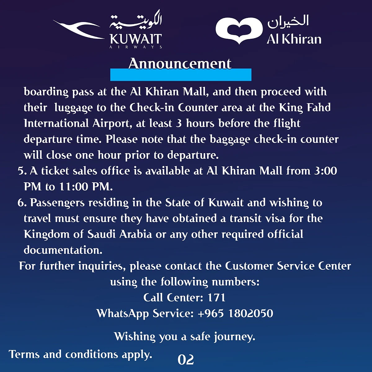 Passengers will now be required to check in at Al Khiran Mall 24 hours before departure, while buses to the land border crossing will depart eight hours prior to flight time.