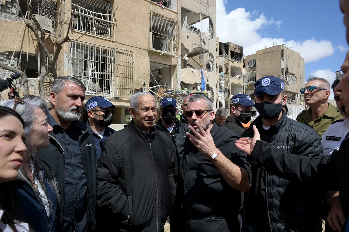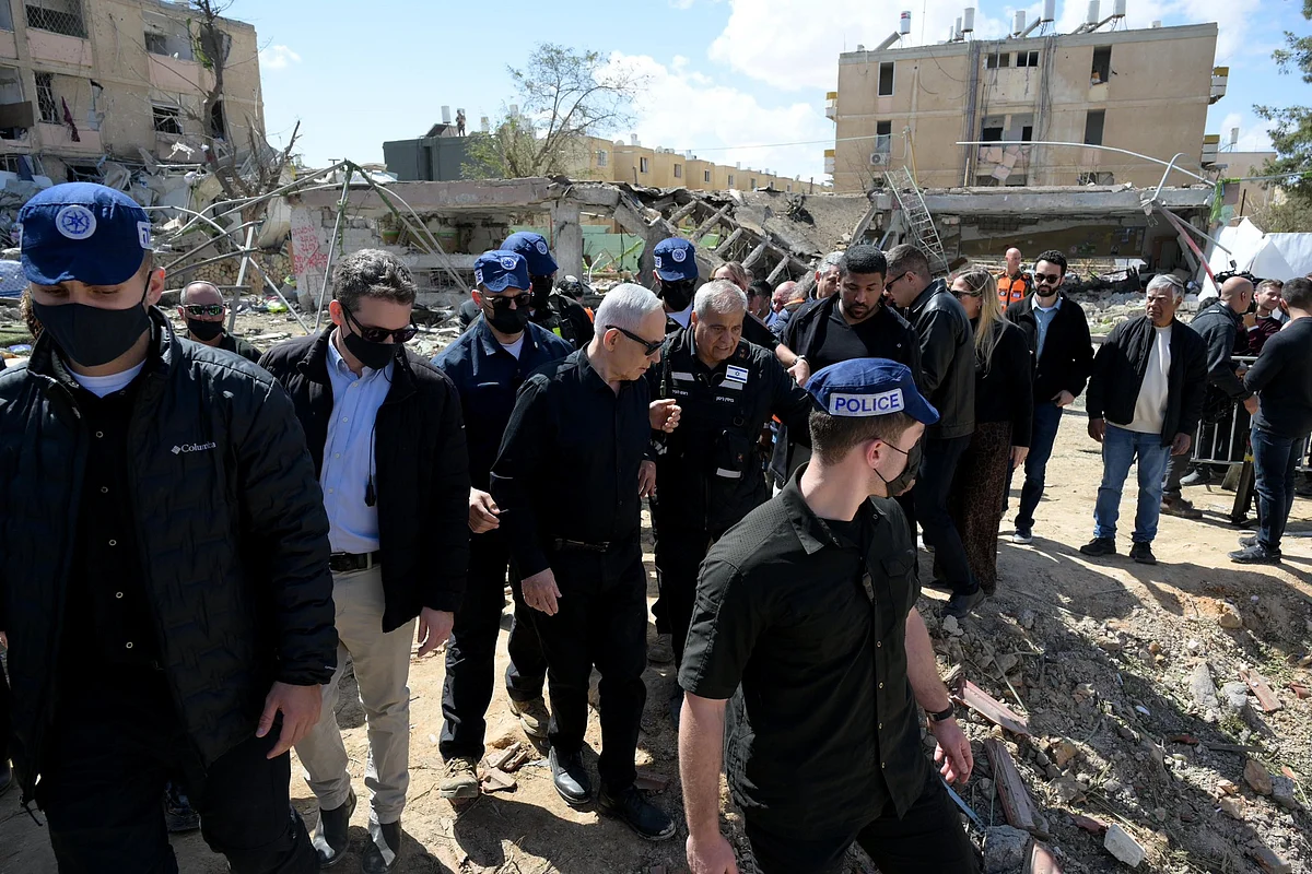 Residential buildings lie in ruins in Arad after Iranian missile strikes wounded scores of people, 10 of them seriously, in the southern Israeli town.