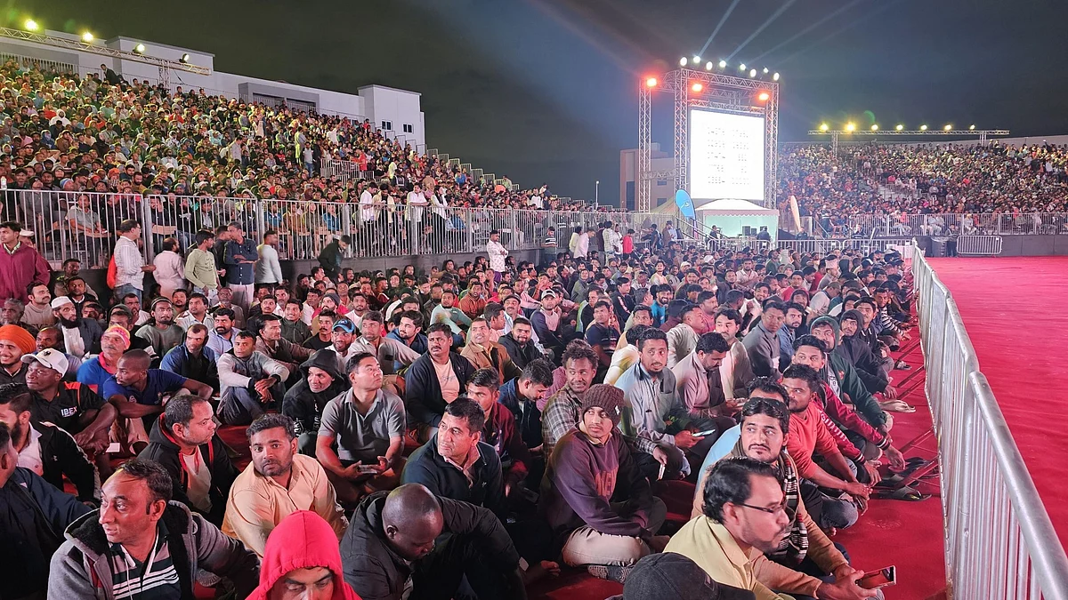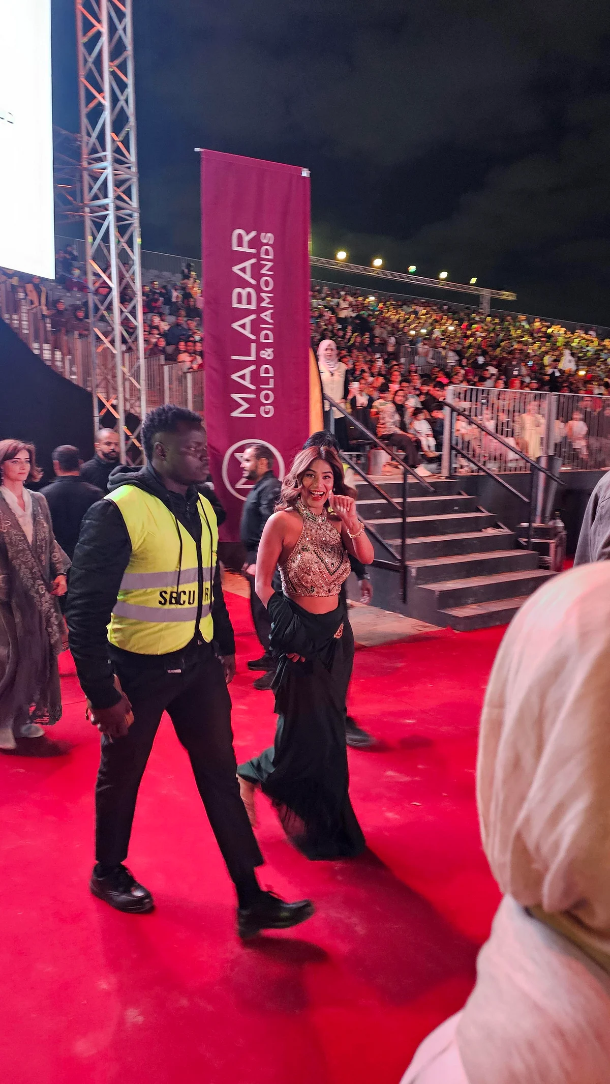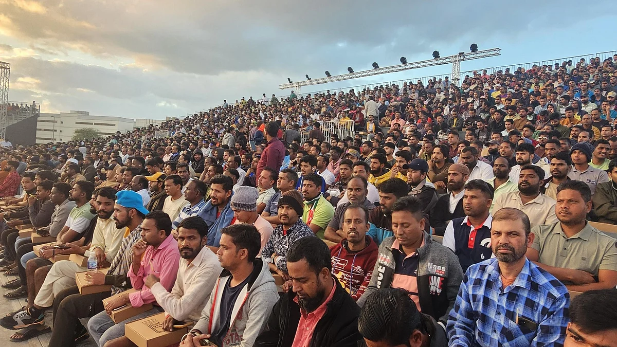 As the night moved on, actress Zareen Khan took to the stage, bringing the celebration to close. Familiar Bollywood songs played as workers watched, clapped, and recorded the moment on their phones, the open ground filled with music as the new year drew closer.