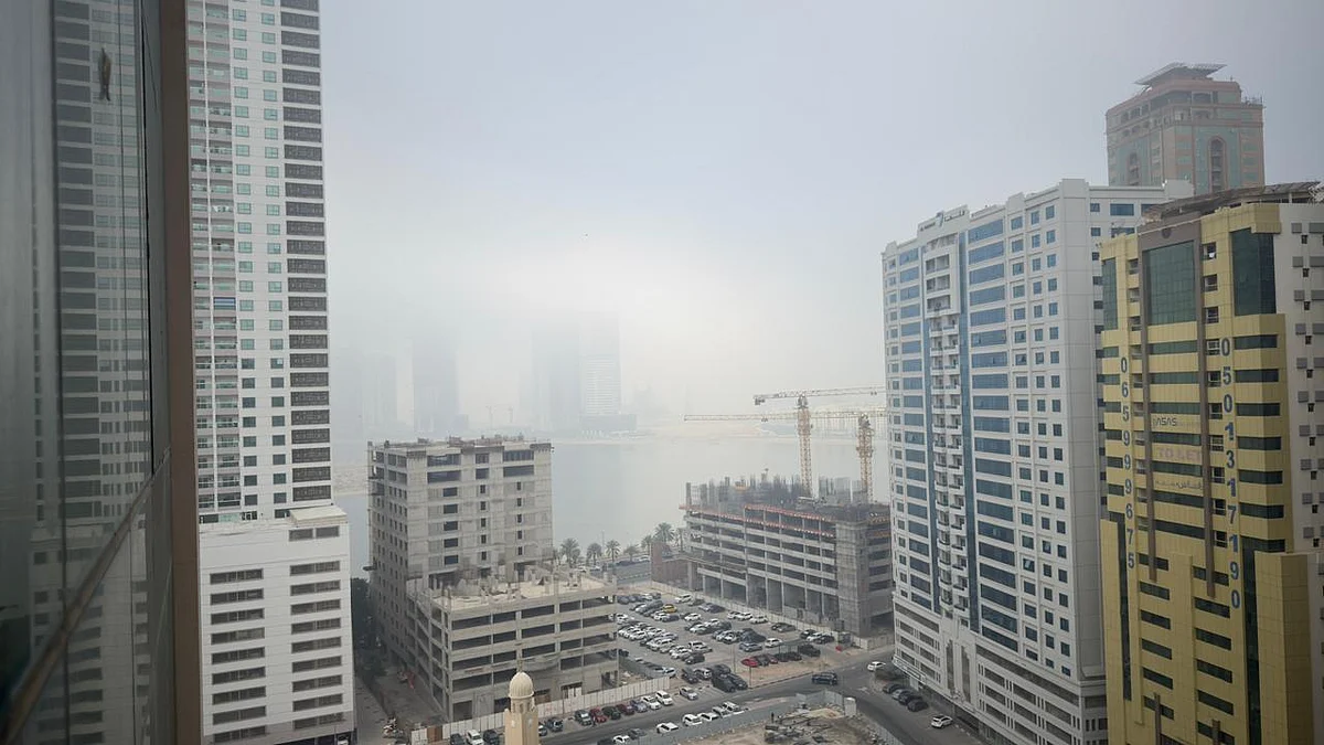 Fog blankets over Sharjah's Al Khan corniche