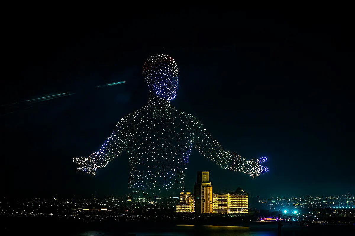 The show included nine giant aerial formations presented for the first time globally, synchronised with a digital countdown and integrated with the fireworks display, offering a visually immersive experience.