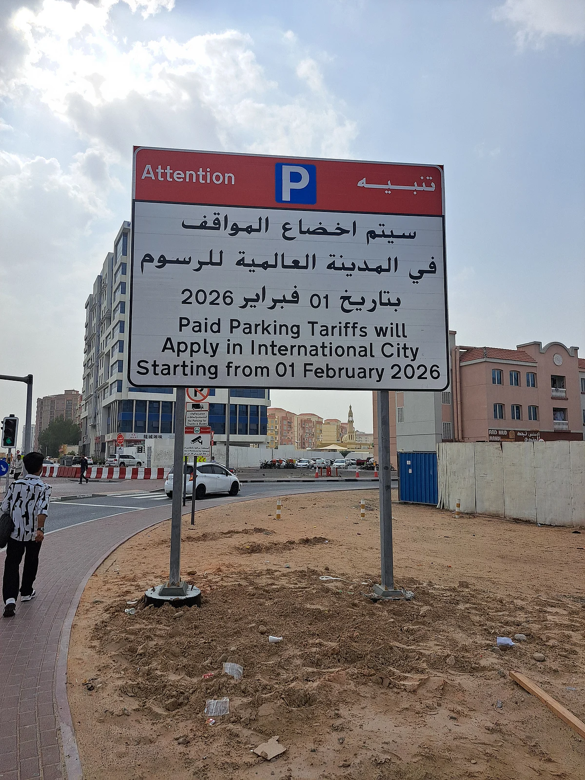 According to a notification displayed by authorities in the International City, paid parking tariffs will apply in International City from February 1, 2026.
