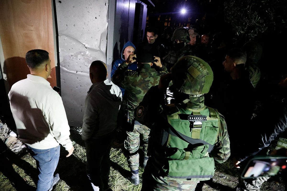 The Israeli military said it understood the strike was caused by a cluster munition, a warhead that splits into tiny bomblets that scatter into a disparate area. Blood stains near a member of Palestinian civil defense checking damage at the scene where Palestinian women were killed in an Iranian missile attack near Hebron in the Israeli-occupied West Bank March 18,2026 A member of Palestinian civil defense checks damage at the scene where Palestinian women were killed in an Iranian missile attack Palestinian security forces gather at the scene where Palestinian women were killed in an Iranian missile attack