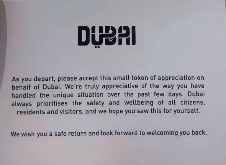 In a heartwarming gesture, Dubai is giving travellers a small token of appreciation. The note, posted on social media, shows that the government thanked travellers for handling the "unique situation" and wished them a safe return.