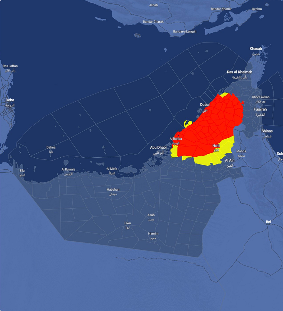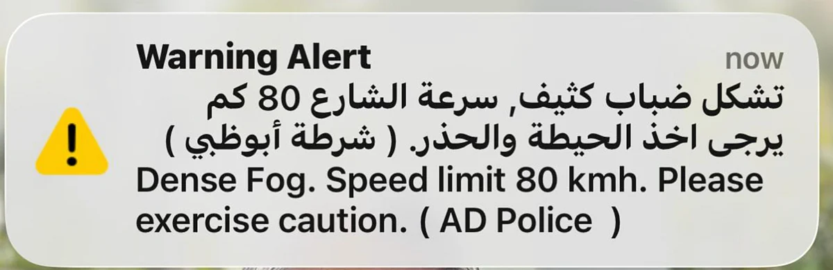 Meanwhile, residents in Abu Dhabi received warning alerts on their mobile devices to inform them of reduced speed limits on the emirates roads due to the thick fog.