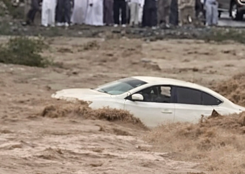 A driver in Fujairah escaped unharmed after his vehicle was swept away by flash floods in the Al Halah area of Dibba, Fujairah. The motorist was attempting to cross a wadi.