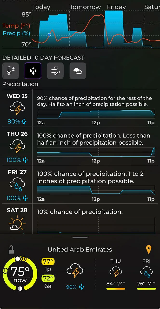 KT's Haneen Dajani has reported that the most significant weather activity is forecast between Thursday night and Friday, when the final wave of the system moves across the UAE.