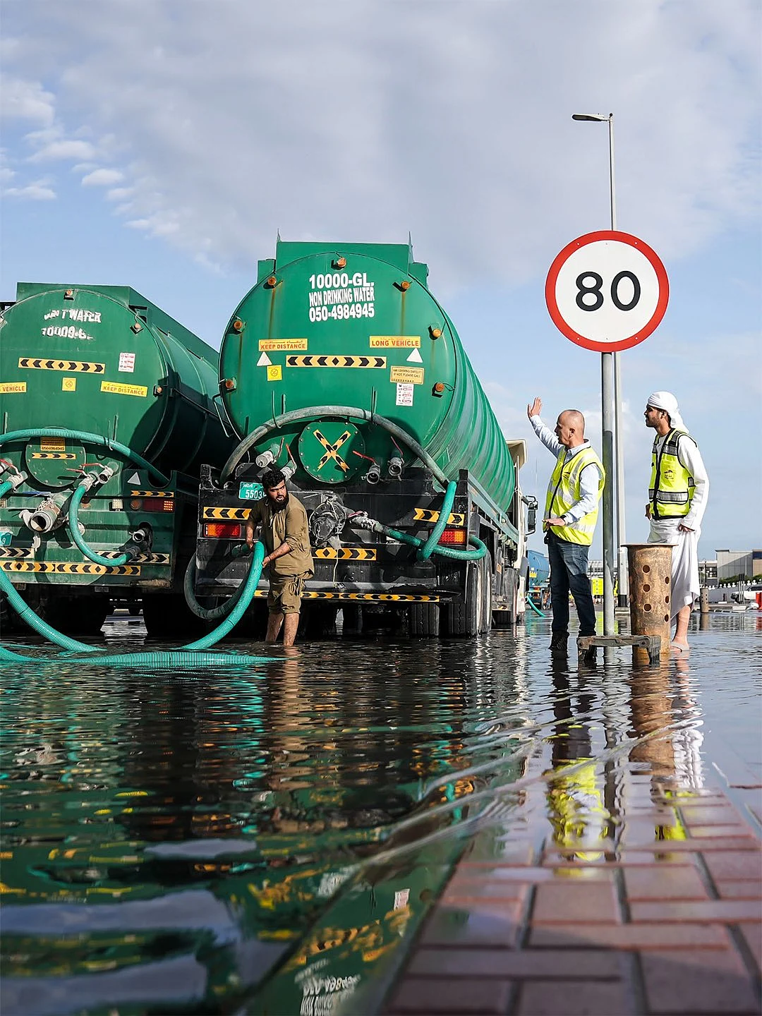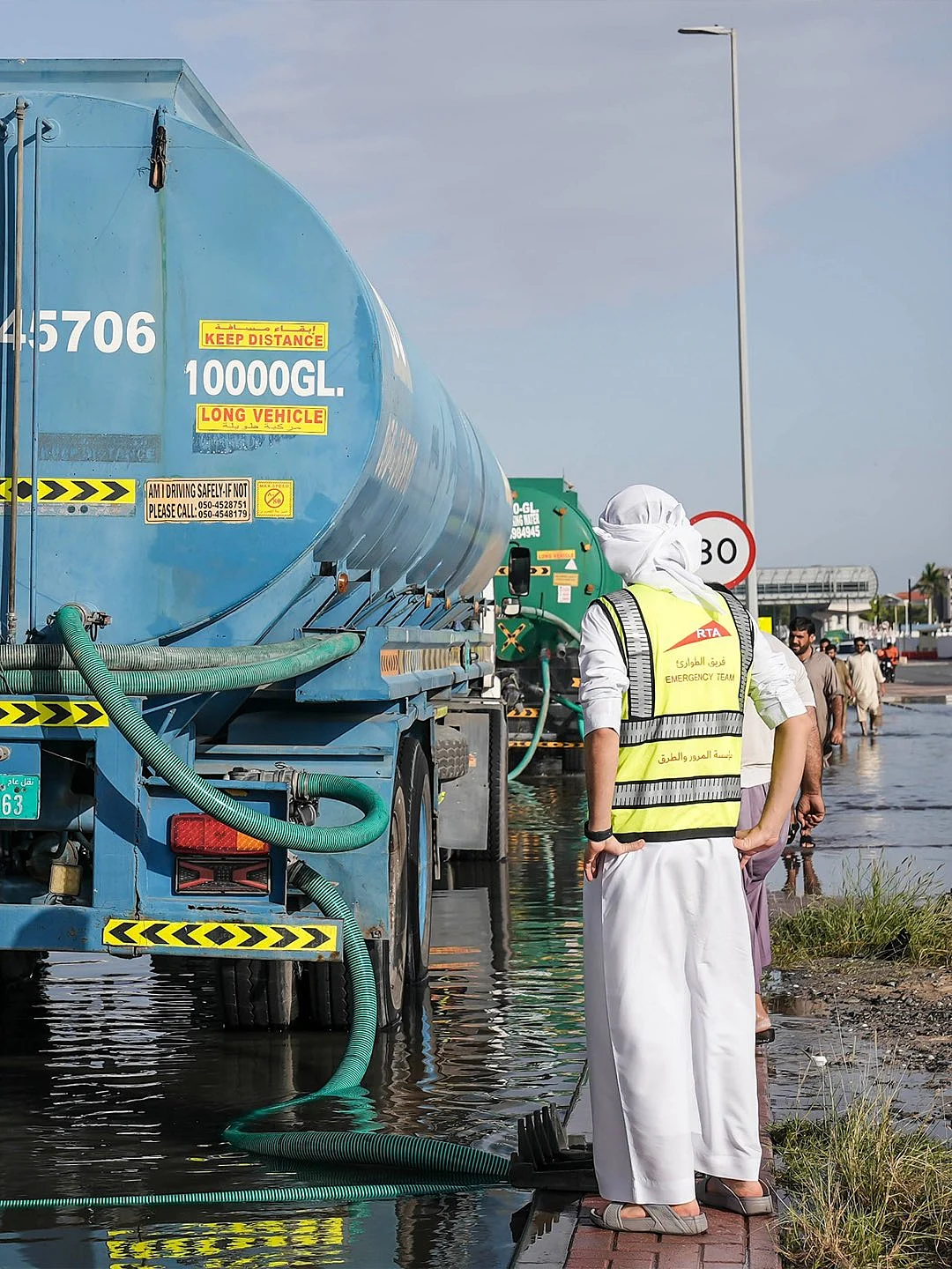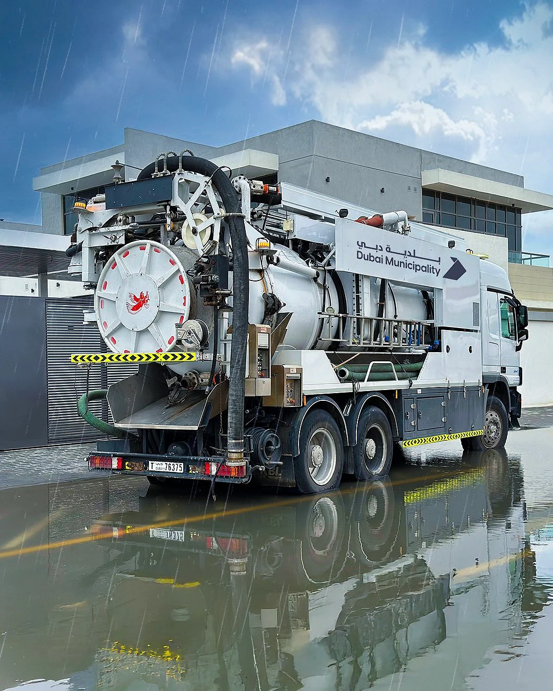 Dubai Municipality yesterday shared how the authority places vaccuum tankers and personnel on ground to deal with the after effects of the rains.